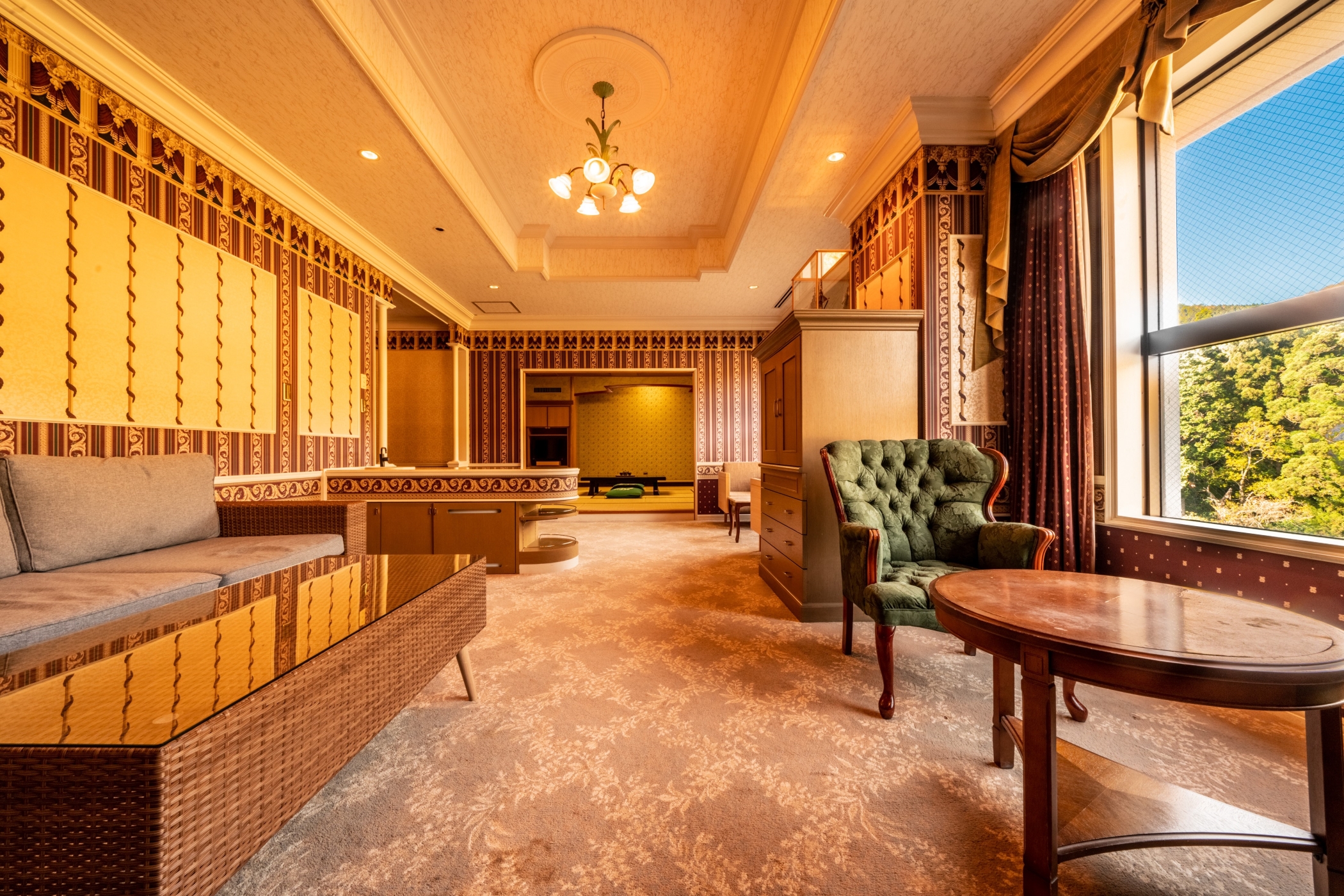 【禁烟】 小型套房日西合璧双床3间 可容纳10人 有室内浴池
